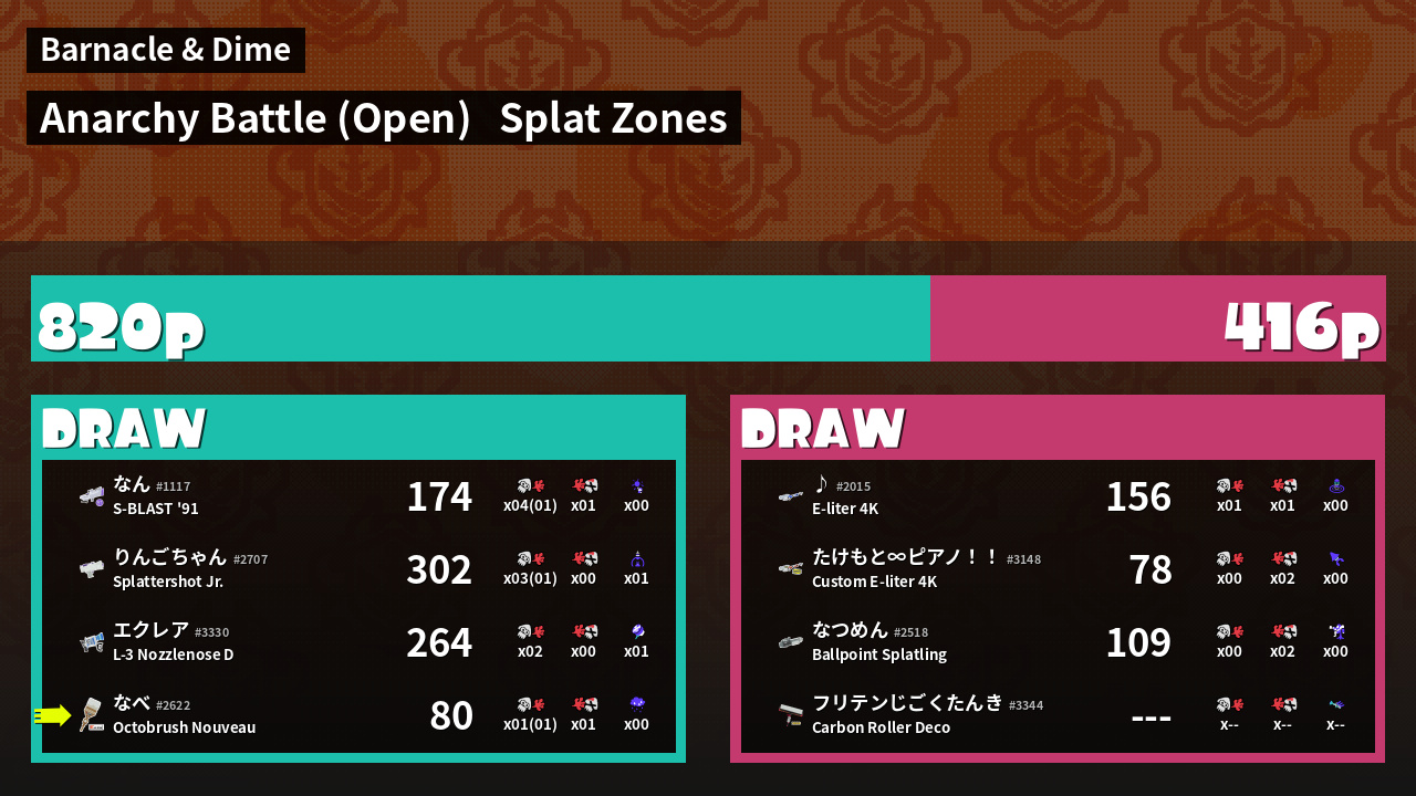 | Mode | Splat Zones - Anarchy Battle (Open) | ||