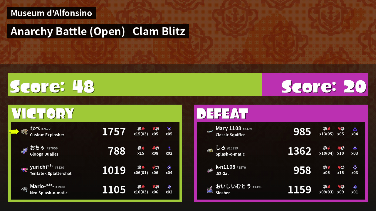 | Mode | Clam Blitz - Anarchy Battle (Open) | ||