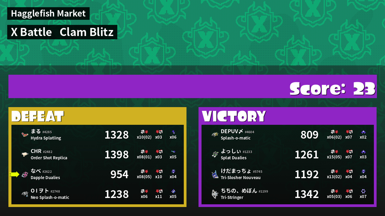 | Medals | #1 Super Jump Spot #1 Splat Assister #1 Clam Stopper | ||