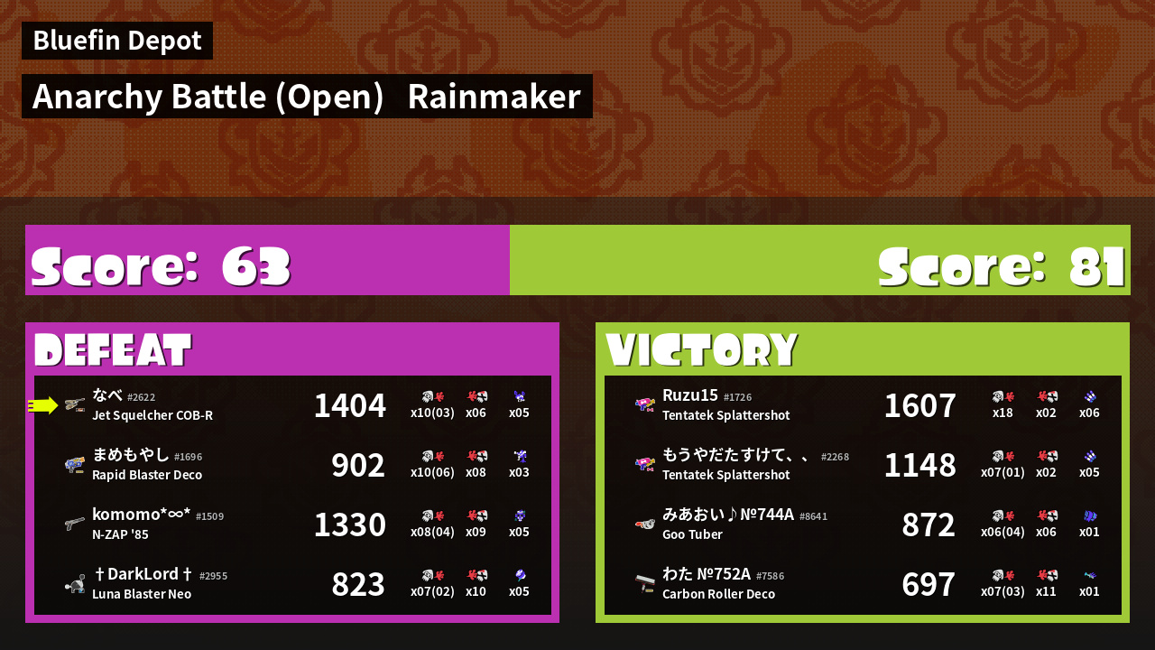 | Mode | Rainmaker - Anarchy Battle (Open) | ||