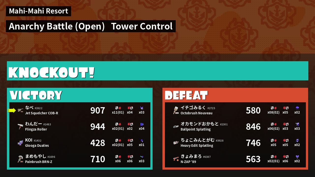 | Mode | Tower Control - Anarchy Battle (Open) |