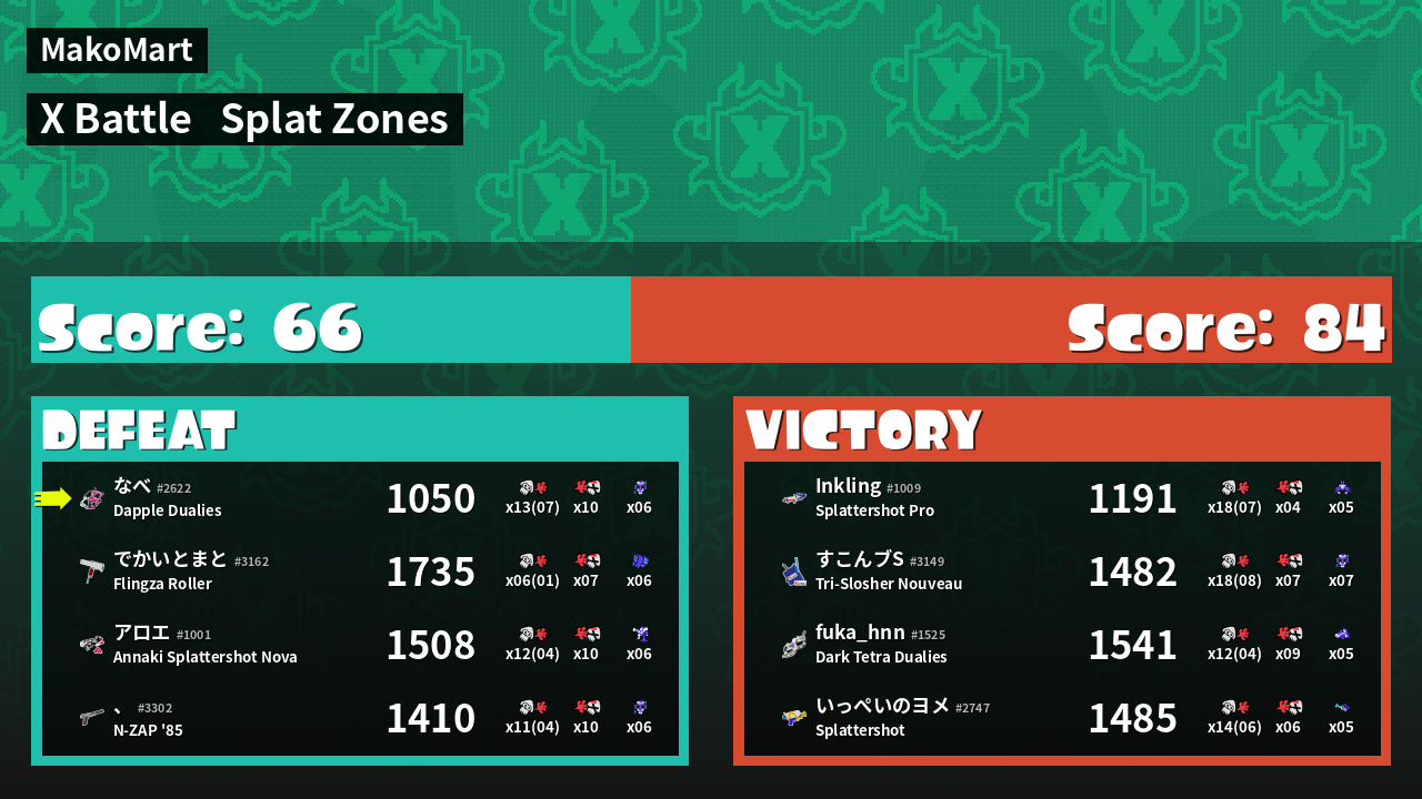 | Medals | #1 Overall Splatter #1 Splat Zone Guard #1 Super Jump Spot | ||