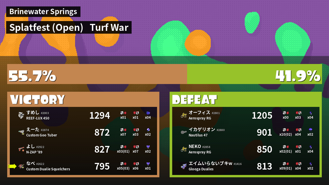 | Medals | #1 Splat Assister #1 Base Defender #1 Super Chump User | ||
