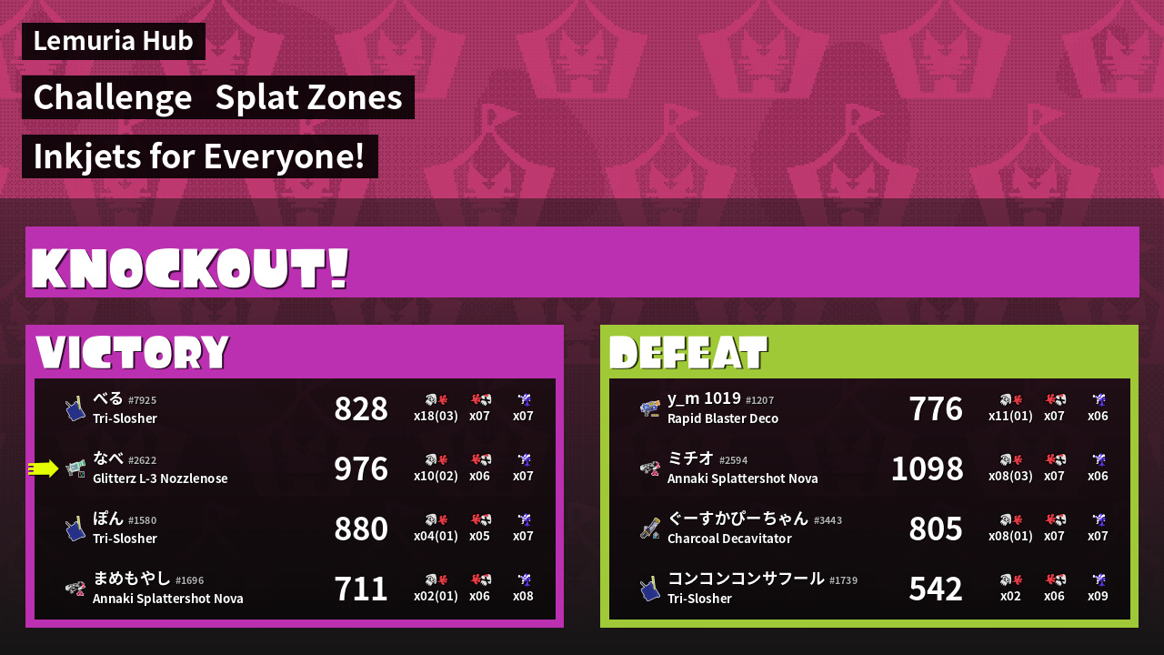 | Weapon | Glitterz L-3 Nozzlenose ( Splat Bomb / Inkjet) |