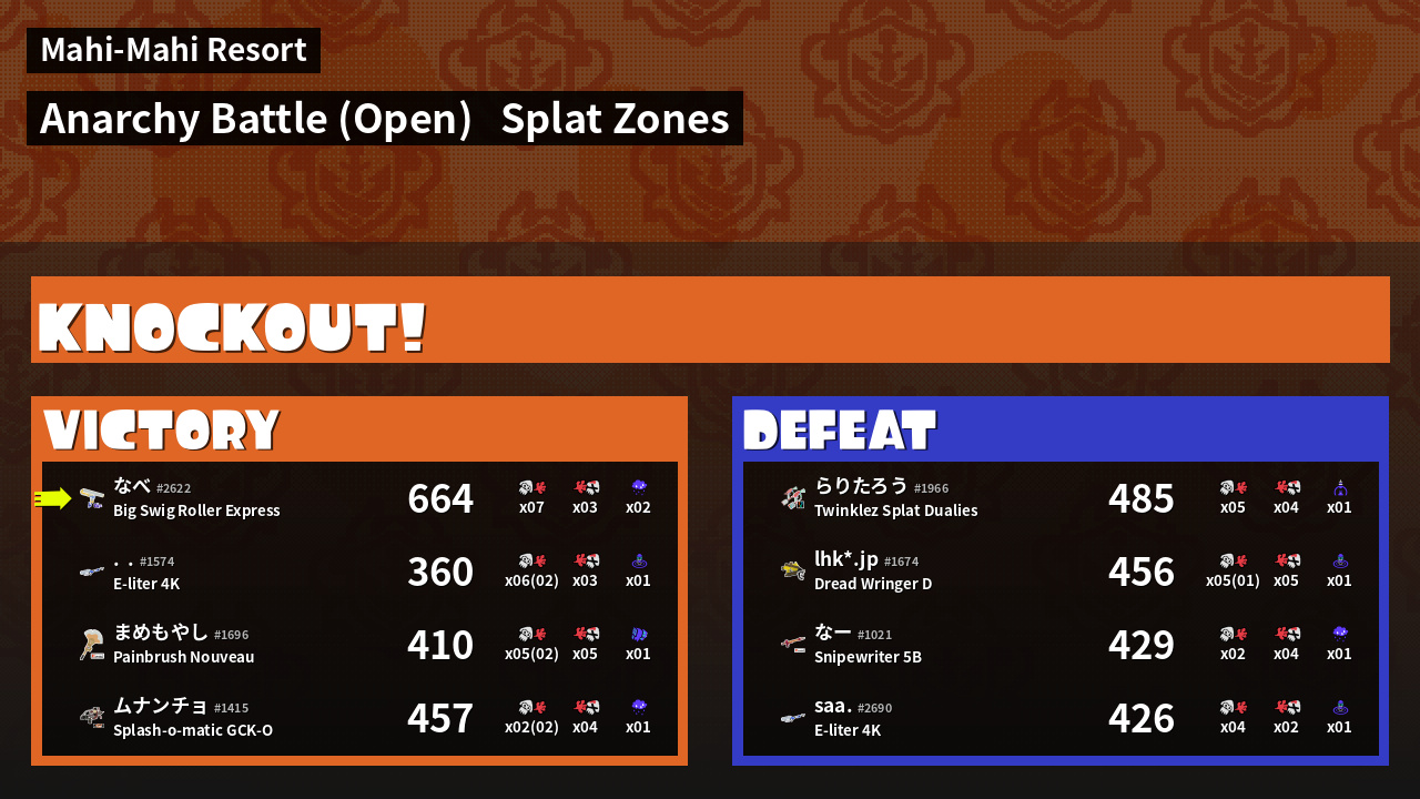 | Mode | Splat Zones - Anarchy Battle (Open) |