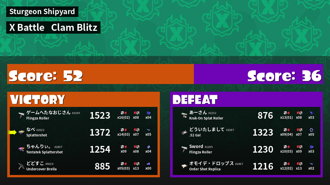 | Medals | #1 Clam Carrier #1 Super Jump Spot #1 Splat Assister | ||