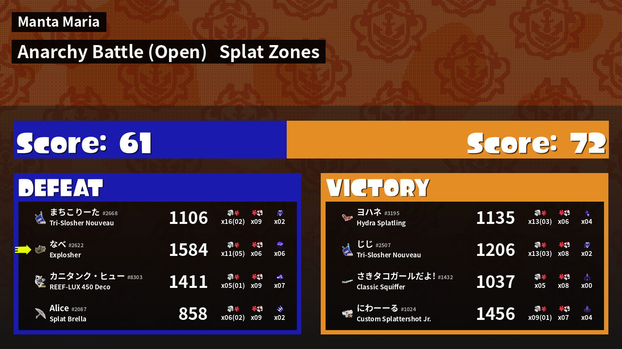 | Mode | Splat Zones - Anarchy Battle (Open) | ||