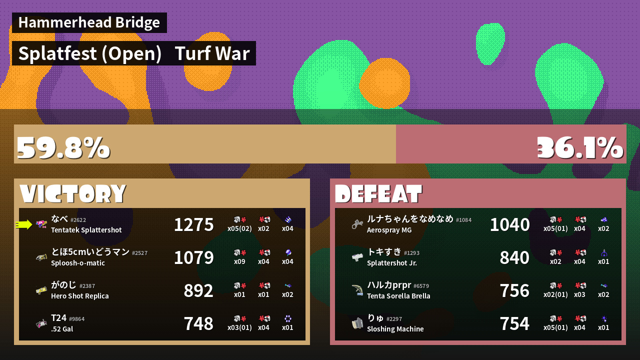| Medals | #1 Turf Inker #1 Super Jump Spot #1 Splat Assister | ||