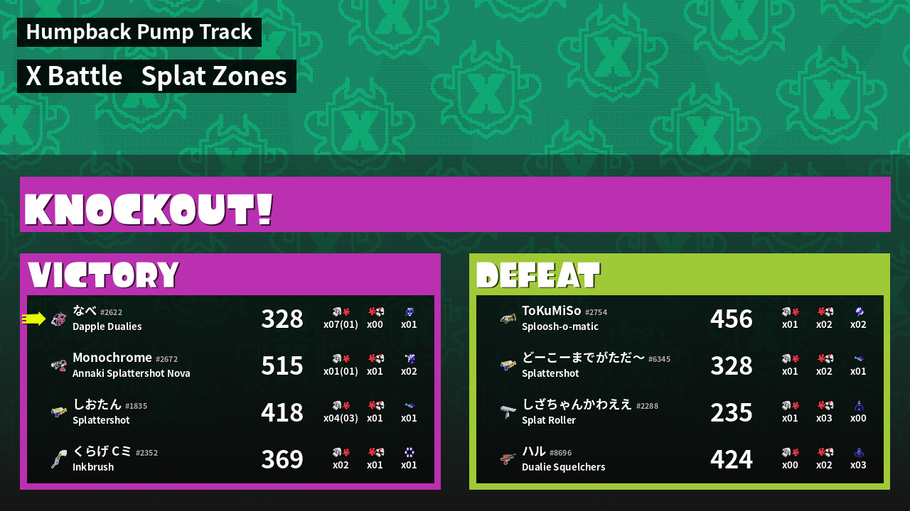 | Medals | #1 Overall Splatter #1 Splat Zone Guard #1 Popular Target | ||