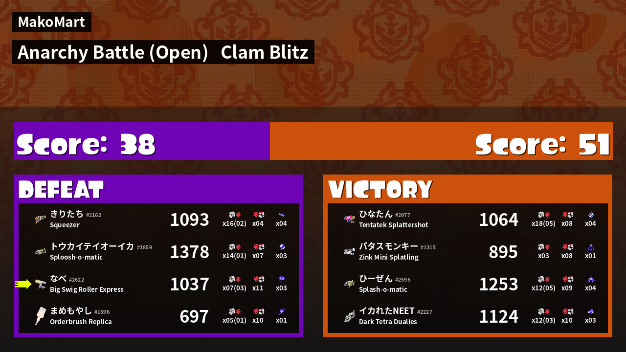 | Mode | Clam Blitz - Anarchy Battle (Open) | ||
