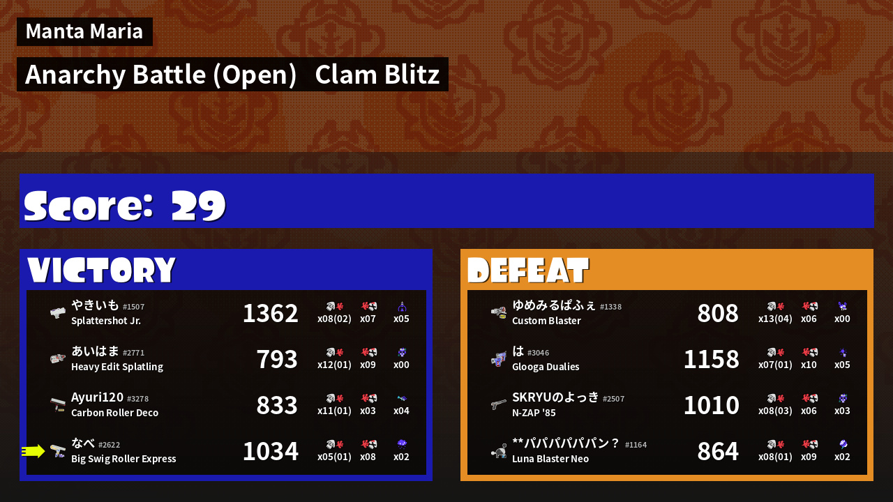 | Mode | Clam Blitz - Anarchy Battle (Open) | ||