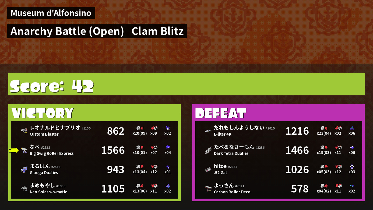 | Mode | Clam Blitz - Anarchy Battle (Open) |