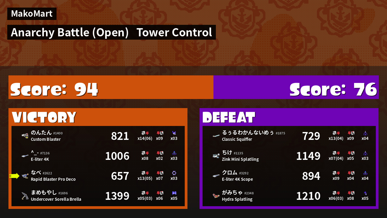 | Mode | Tower Control - Anarchy Battle (Open) | ||