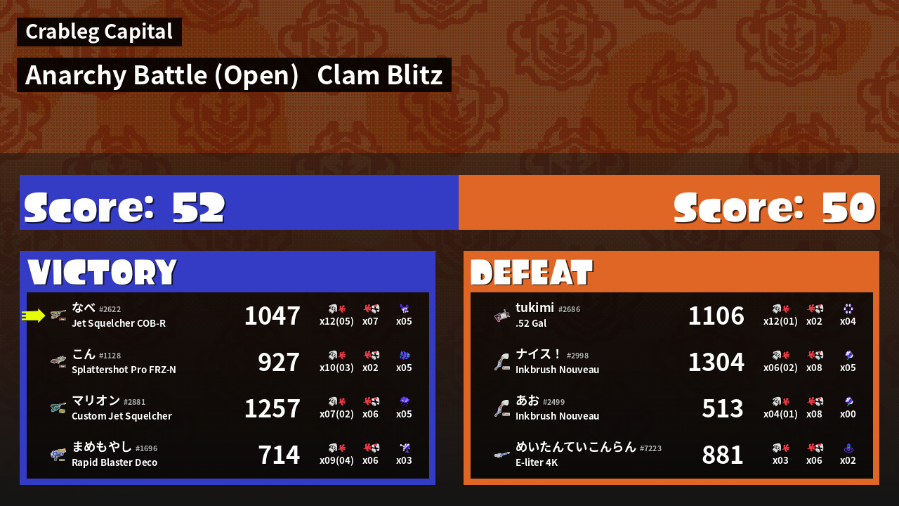 | Mode | Clam Blitz - Anarchy Battle (Open) | ||