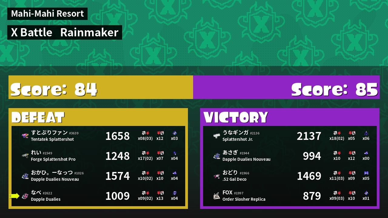 | Medals | #1 Super Jump Spot #1 Tacticooler User #2 Splat Assister | ||