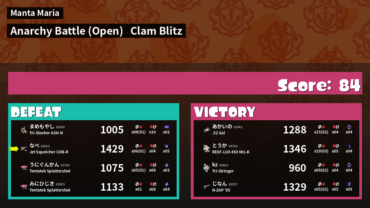 | Mode | Clam Blitz - Anarchy Battle (Open) |