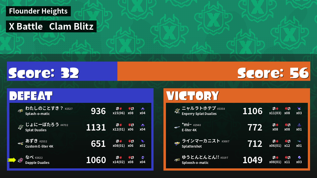 | Mode | Clam Blitz - X Battle | ||