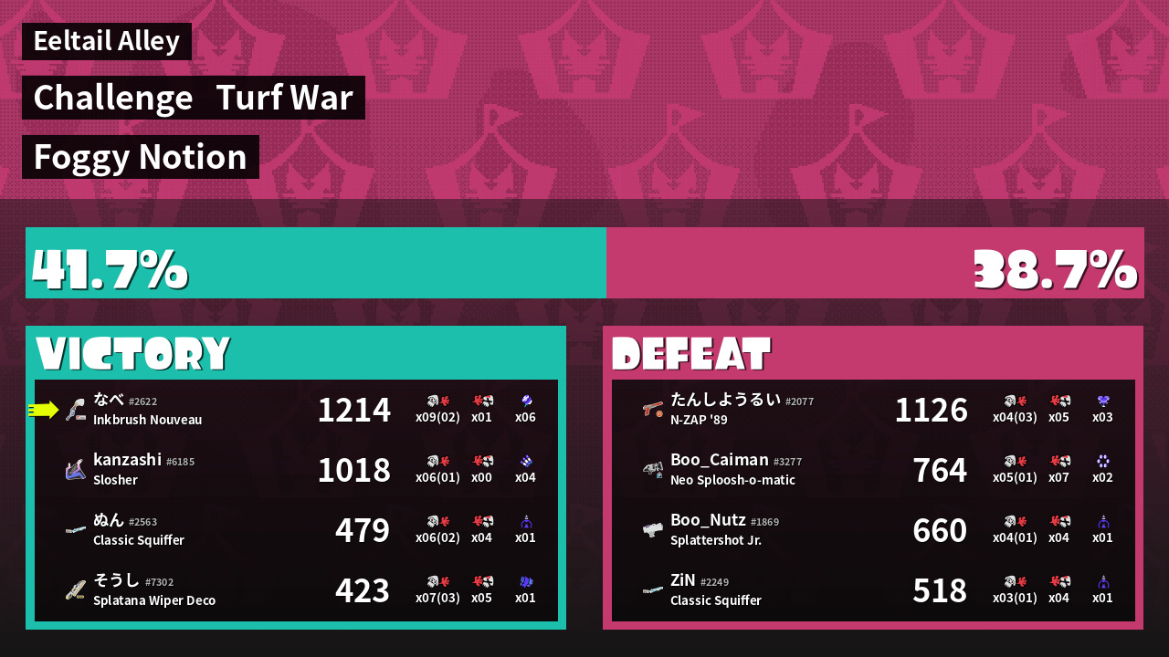 | Mode | Turf War - Challenge | ||
