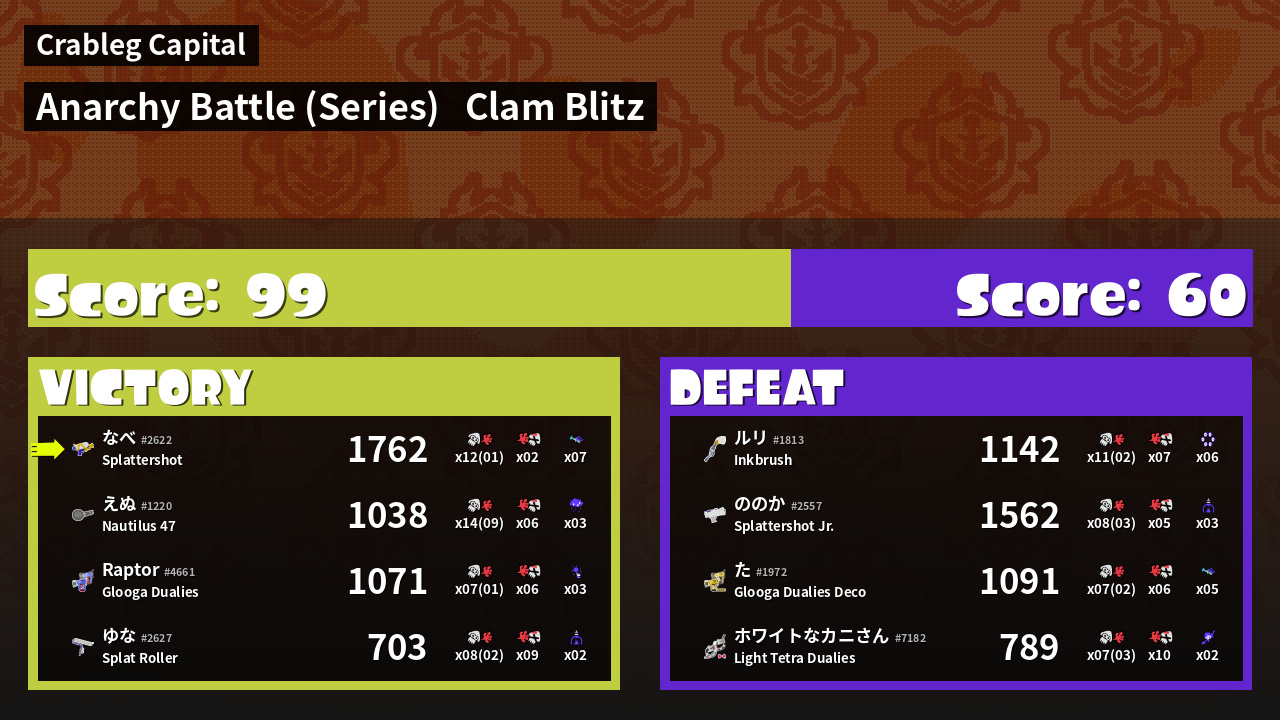 | Mode | Clam Blitz - Anarchy Battle (Series) | ||