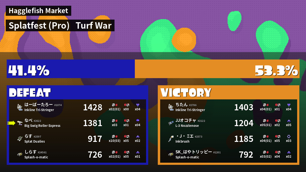 | Mode | Turf War - Splatfest (Pro) | ||