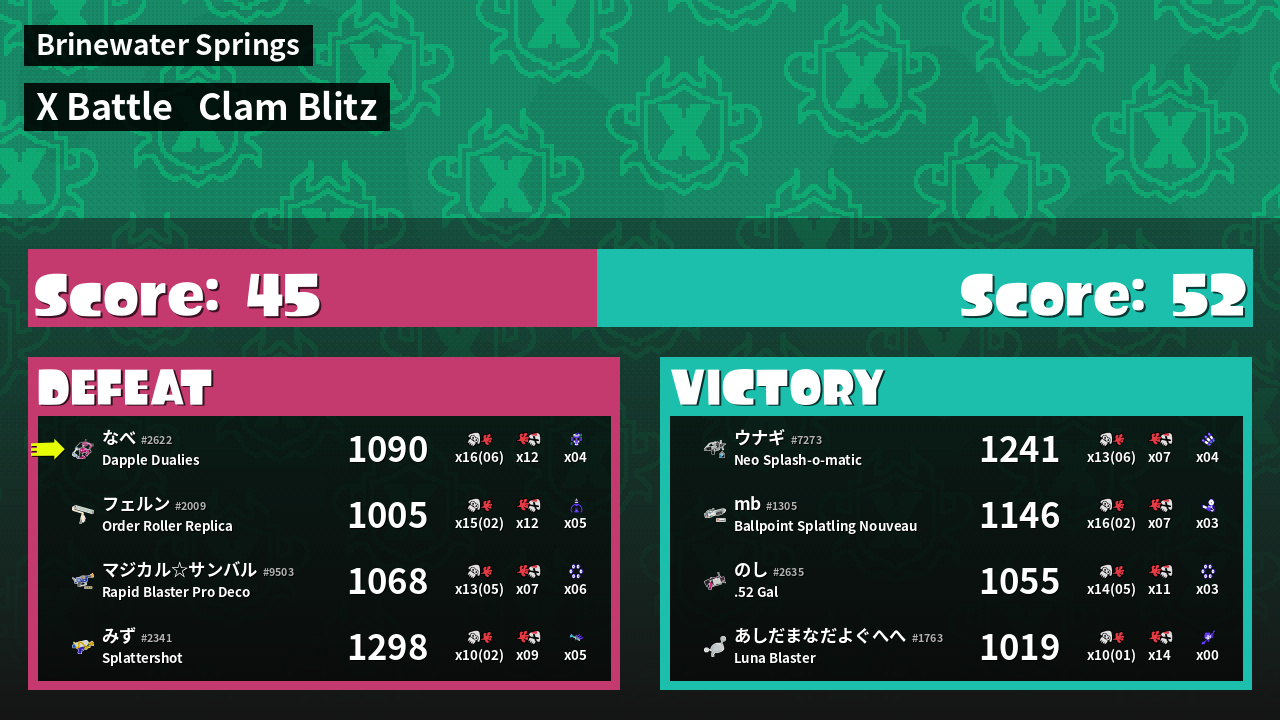 | Medals | #1 Overall Splatter #1 Score Booster #1 Splat Assister | ||