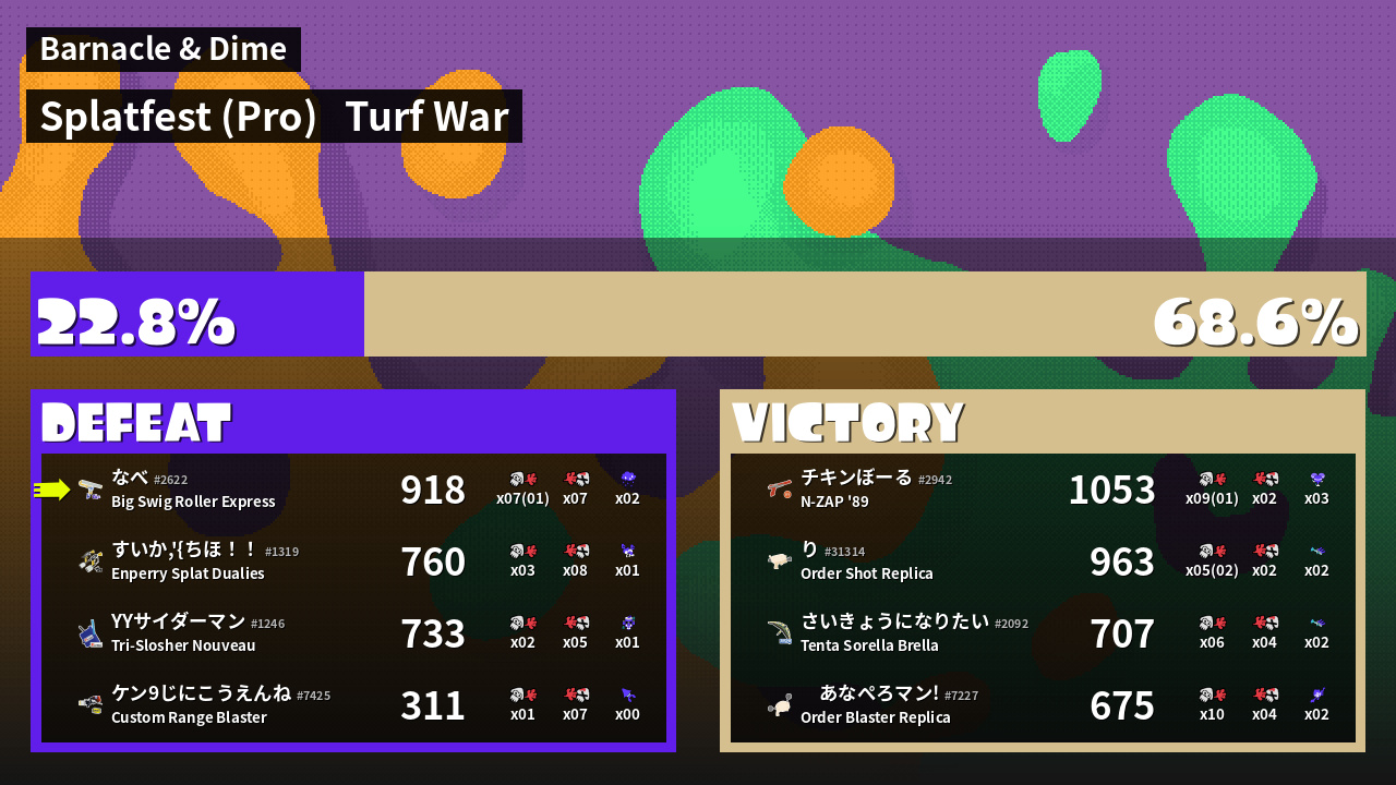 | Mode | Turf War - Splatfest (Pro) | ||