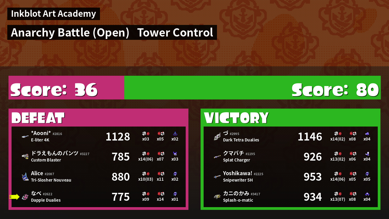 | Mode | Tower Control - Anarchy Battle (Open) | ||