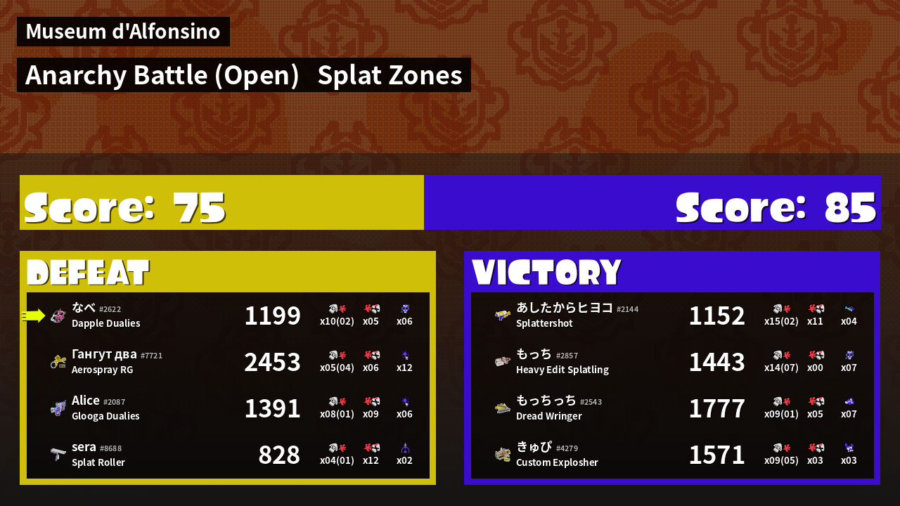 | Mode | Splat Zones - Anarchy Battle (Open) | ||