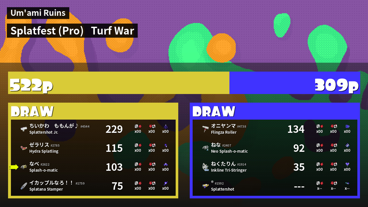 | Mode | Turf War - Splatfest (Pro) | ||