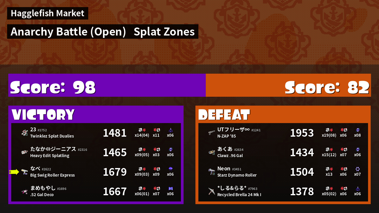 | Mode | Splat Zones - Anarchy Battle (Open) |