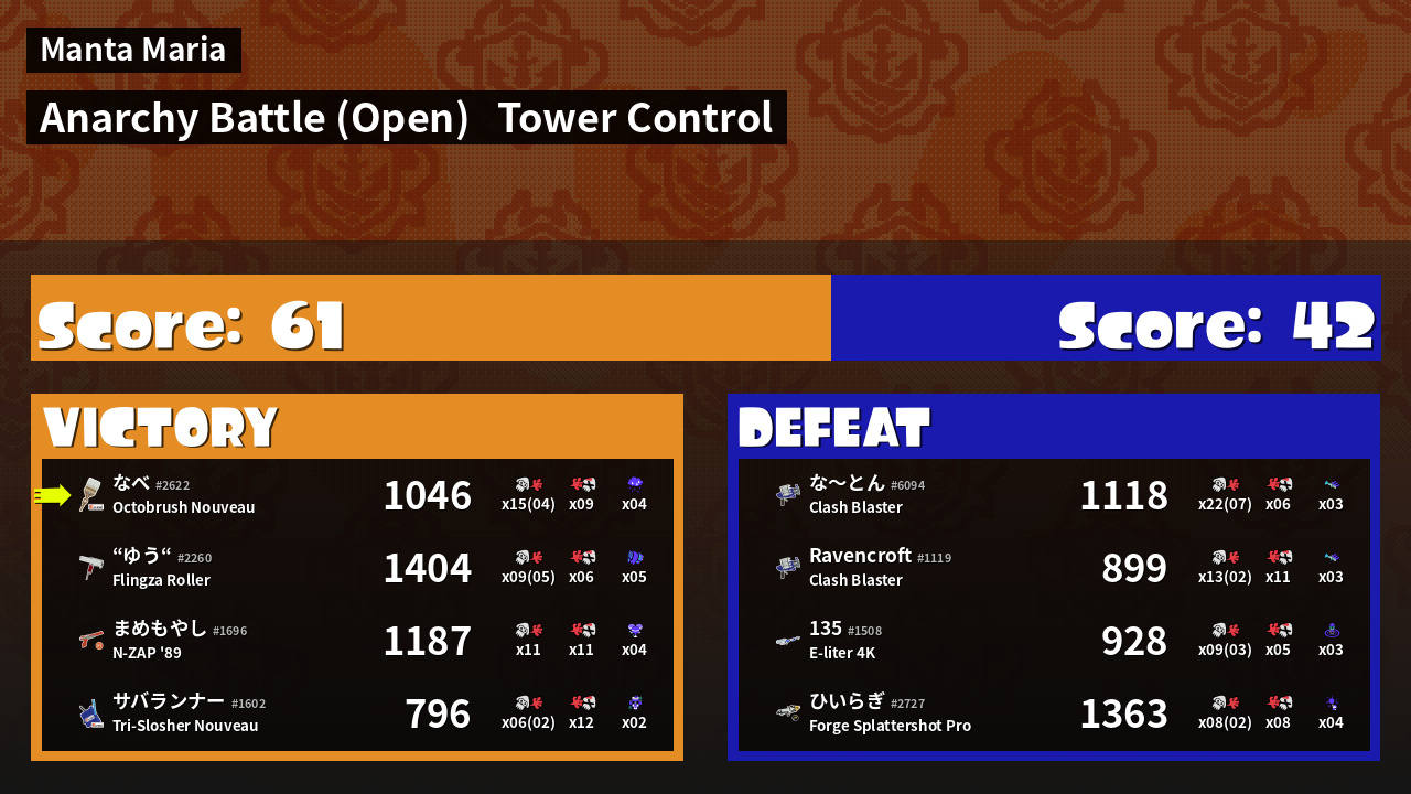 | Mode | Tower Control - Anarchy Battle (Open) |