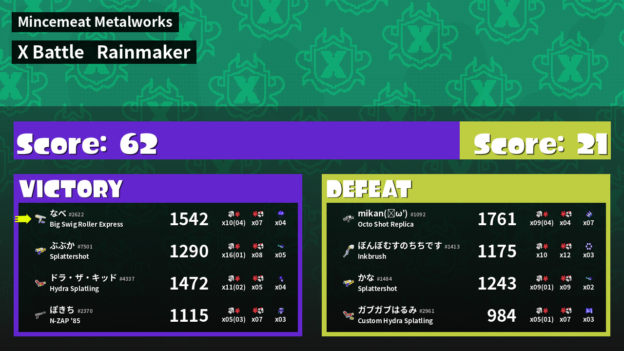 | Weapon | Big Swig Roller Express ( Angle Shooter / Ink Storm) | ||