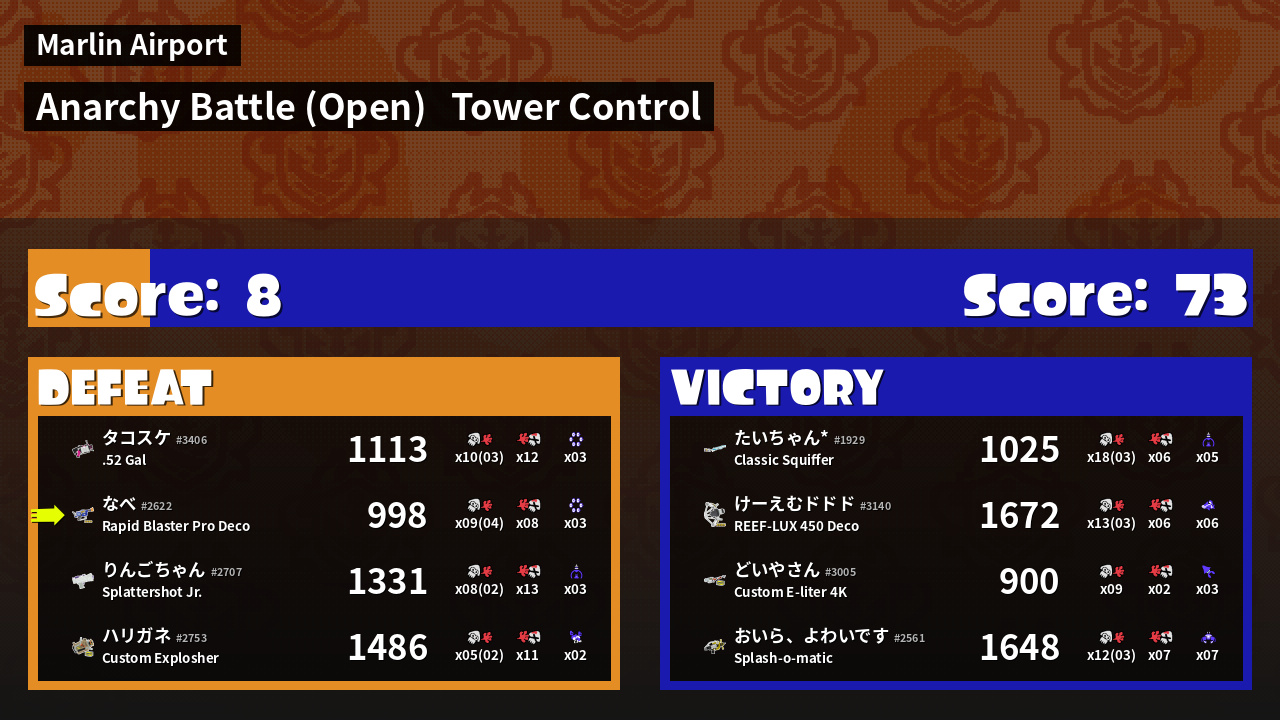 | Mode | Tower Control - Anarchy Battle (Open) | ||