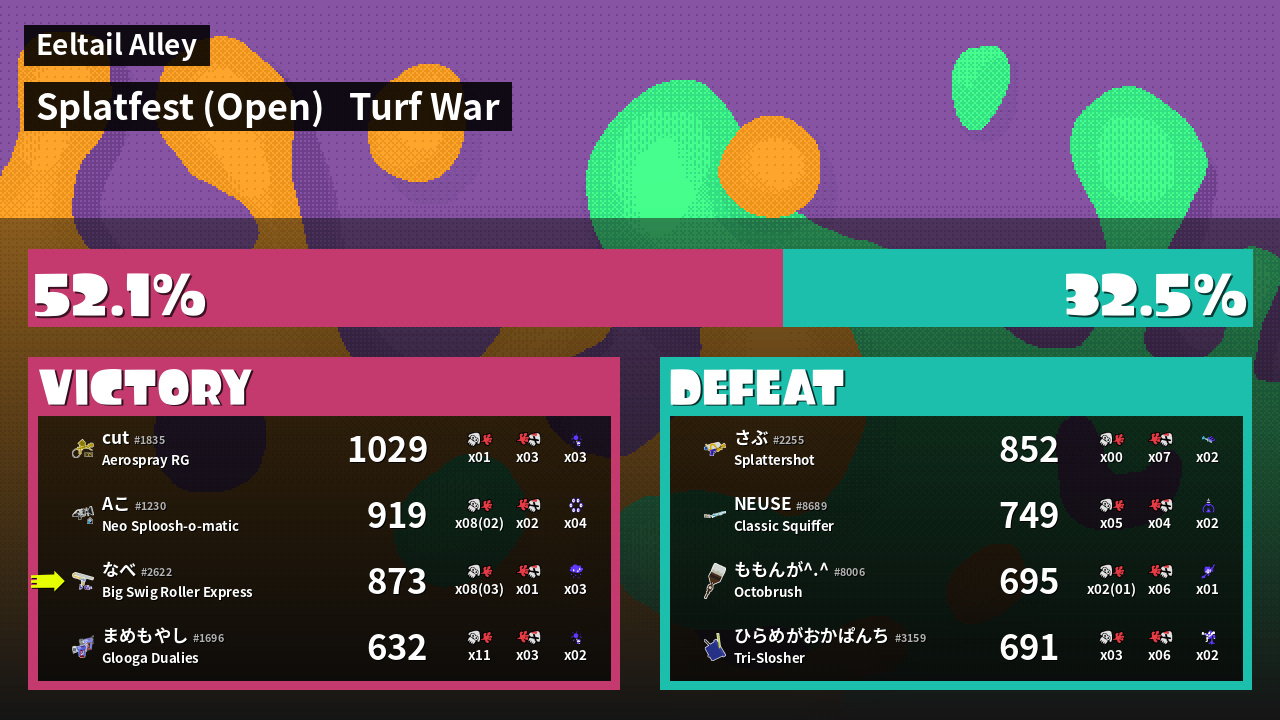 | Medals | #1 Splat Assister #1 Ink Consumer #1 Ink Storm User | ||