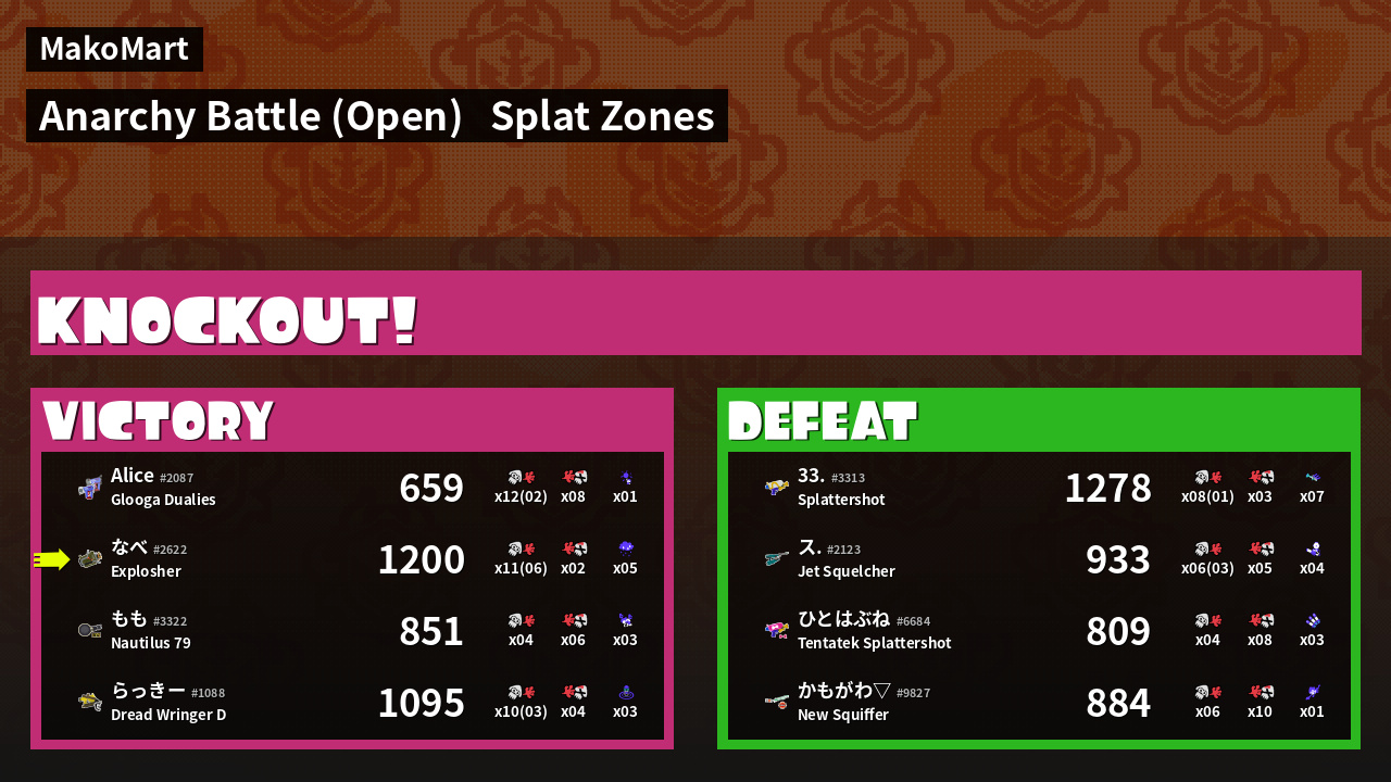 | Mode | Splat Zones - Anarchy Battle (Open) | ||