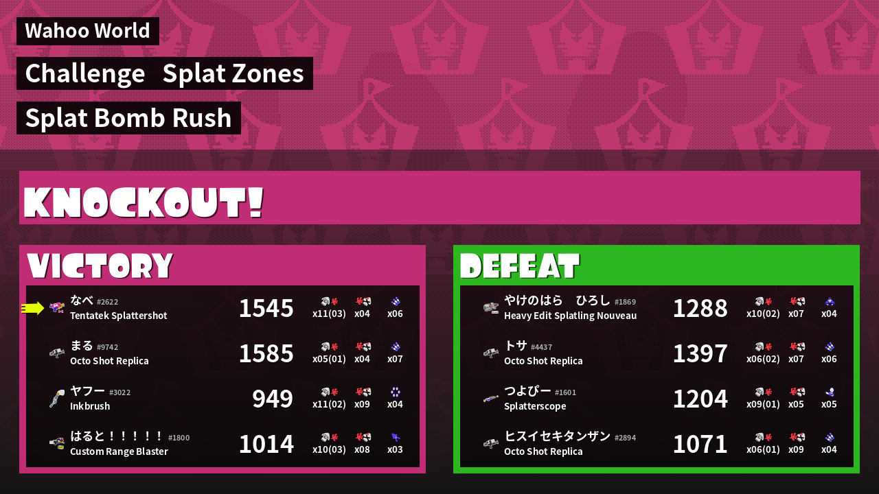 | Challenge | Splat Bomb Rush Let the Splat Bombs fly in this free-for-all! | ||