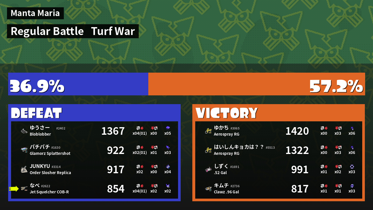 | Medals | #1 Overall Splatter #1 Home-Base Inker #1 Enemy Splatter |