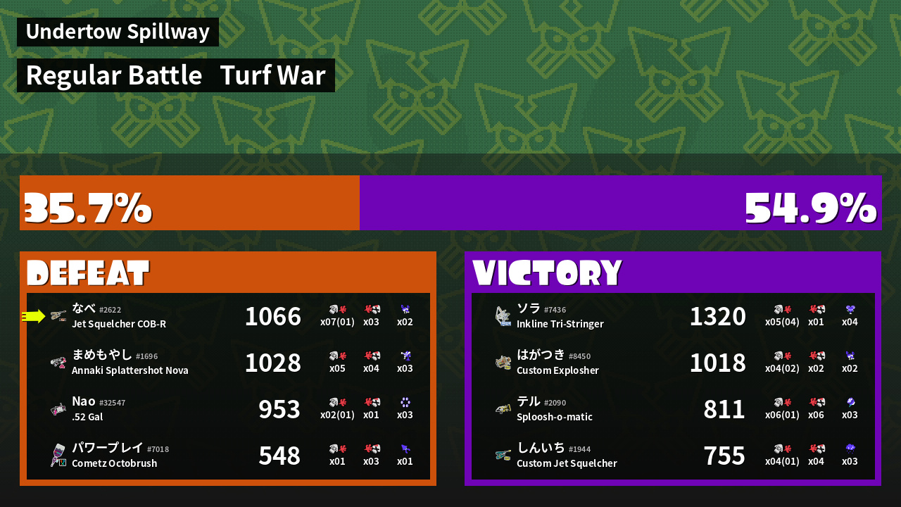 | Medals | #1 Overall Splatter #1 Turf Inker #1 Enemy-Base Inker |