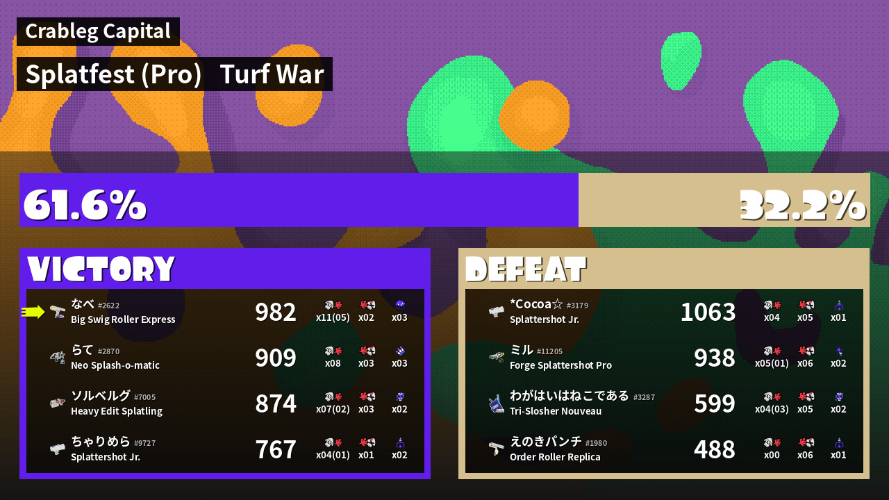 | Mode | Turf War - Splatfest (Pro) | ||