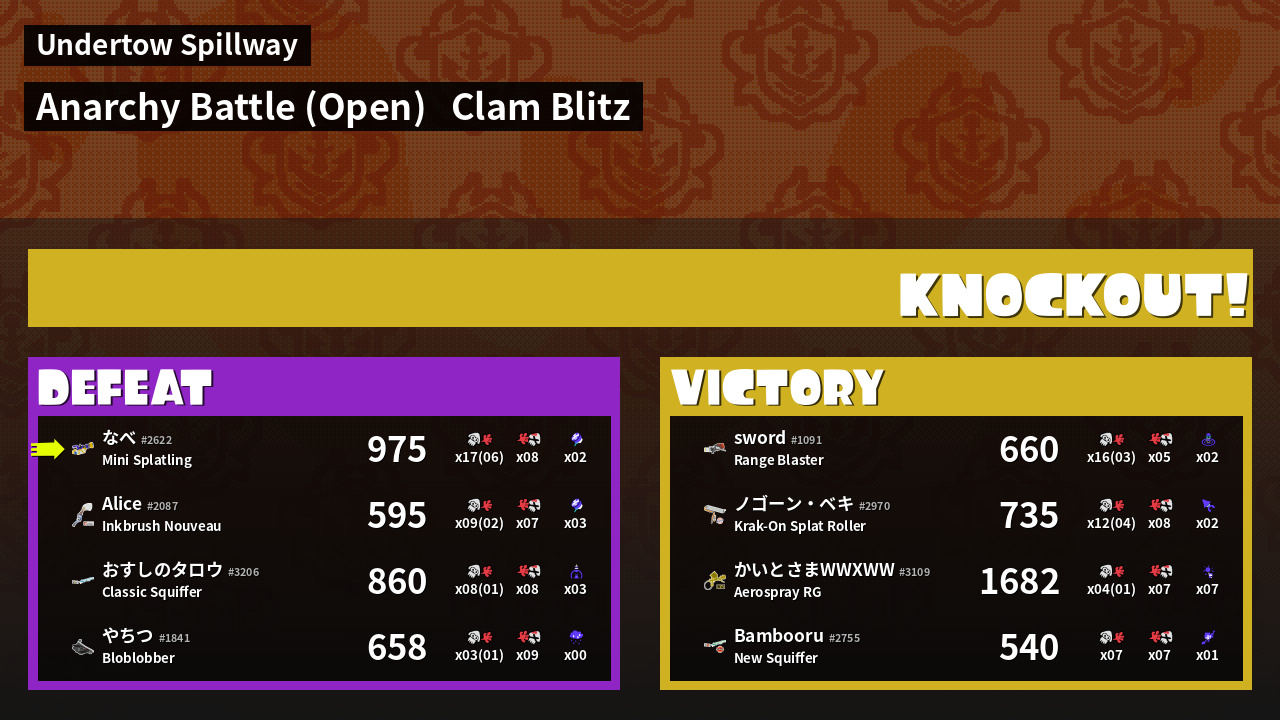 | Mode | Clam Blitz - Anarchy Battle (Open) | ||