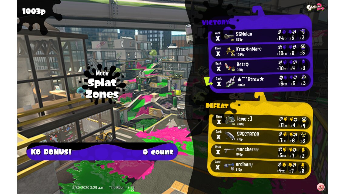 | Mode | Splat Zones - Private Battle | ||||||||||||||||