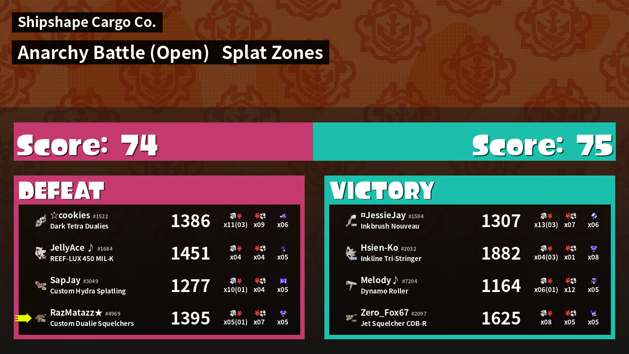 | Mode | Splat Zones - Anarchy Battle (Open) |