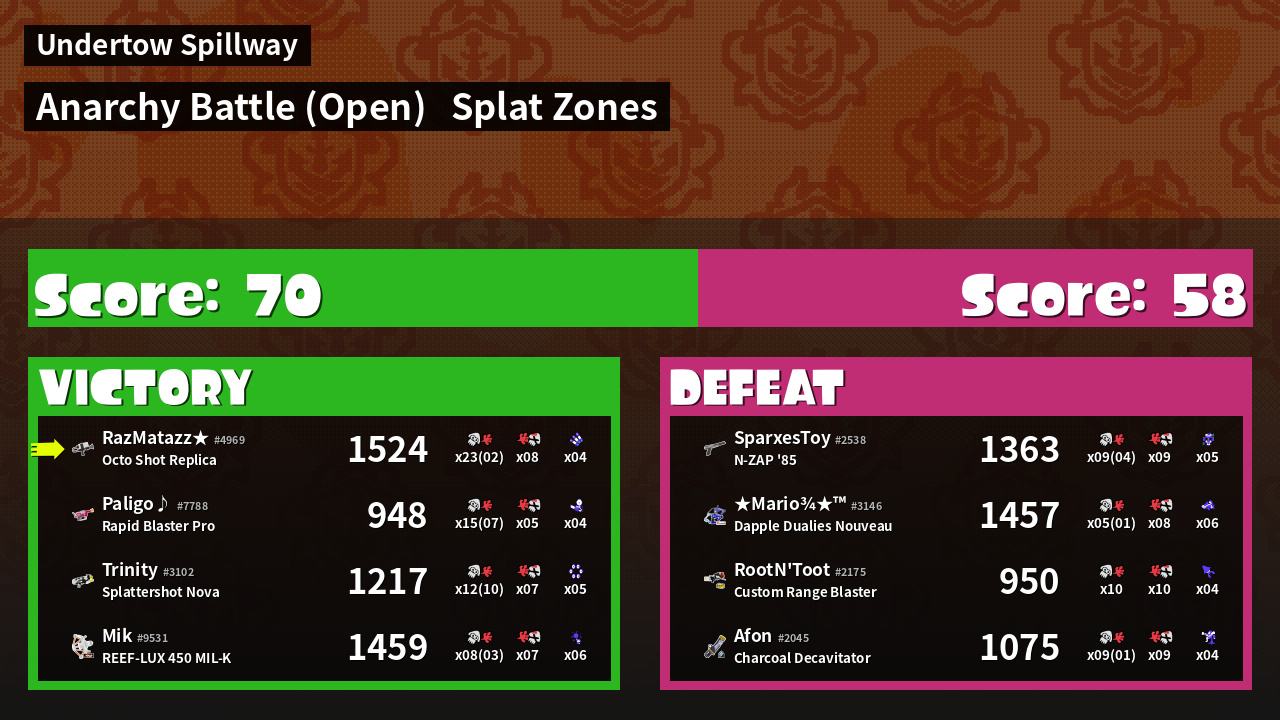 | Mode | Splat Zones - Anarchy Battle (Open) |