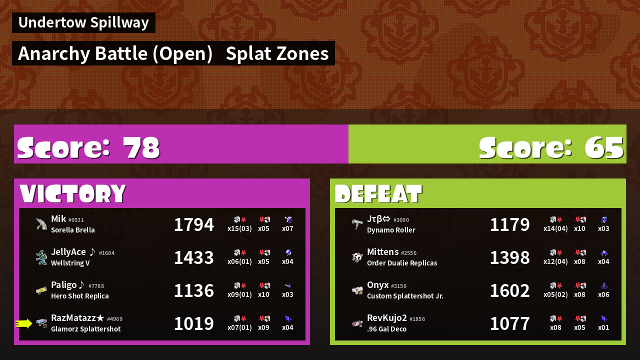 | Mode | Splat Zones - Anarchy Battle (Open) |