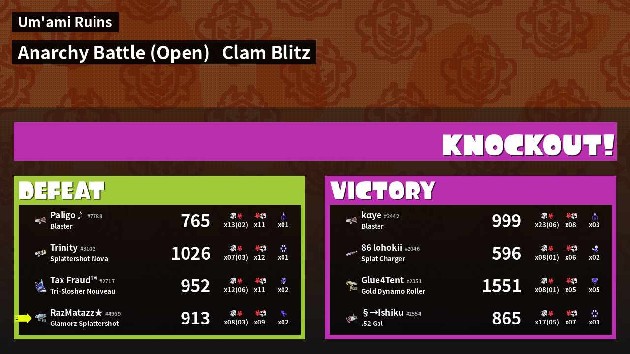 | Mode | Clam Blitz - Anarchy Battle (Open) |