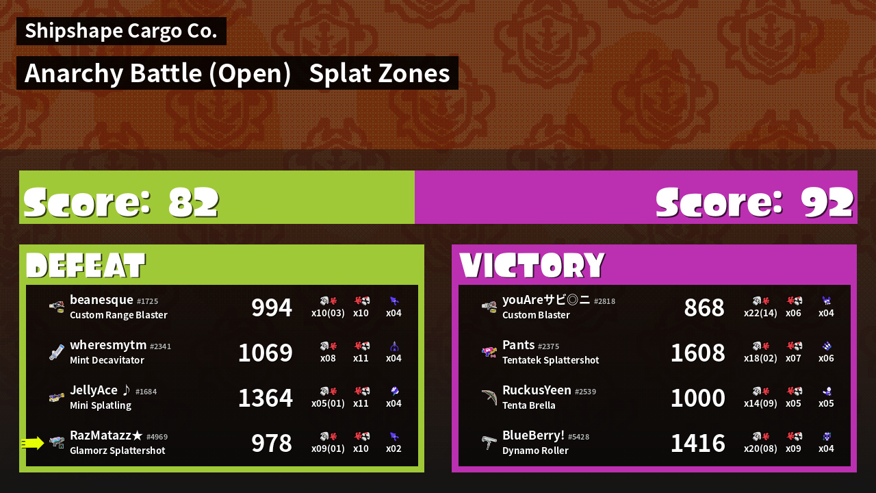 | Mode | Splat Zones - Anarchy Battle (Open) |