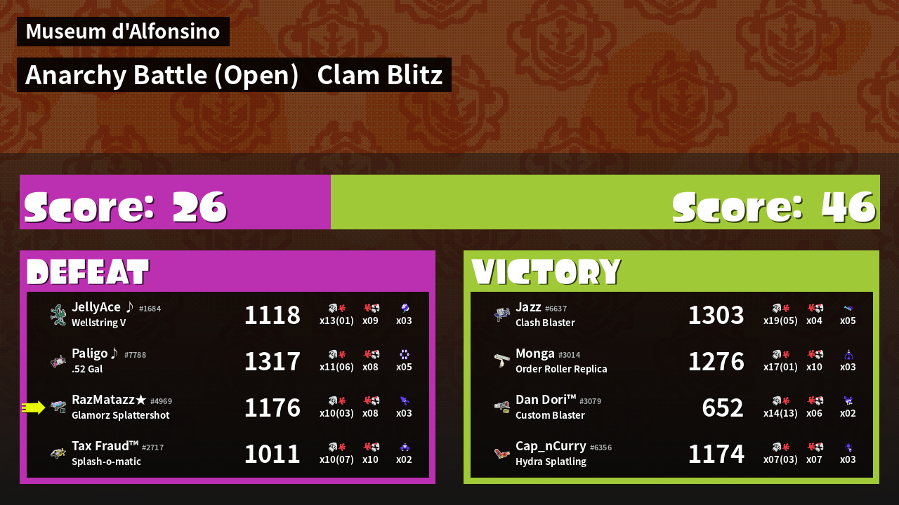 | Mode | Clam Blitz - Anarchy Battle (Open) |