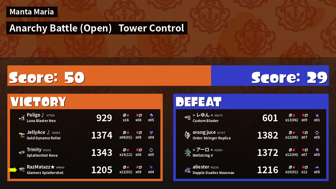 | Mode | Tower Control - Anarchy Battle (Open) |