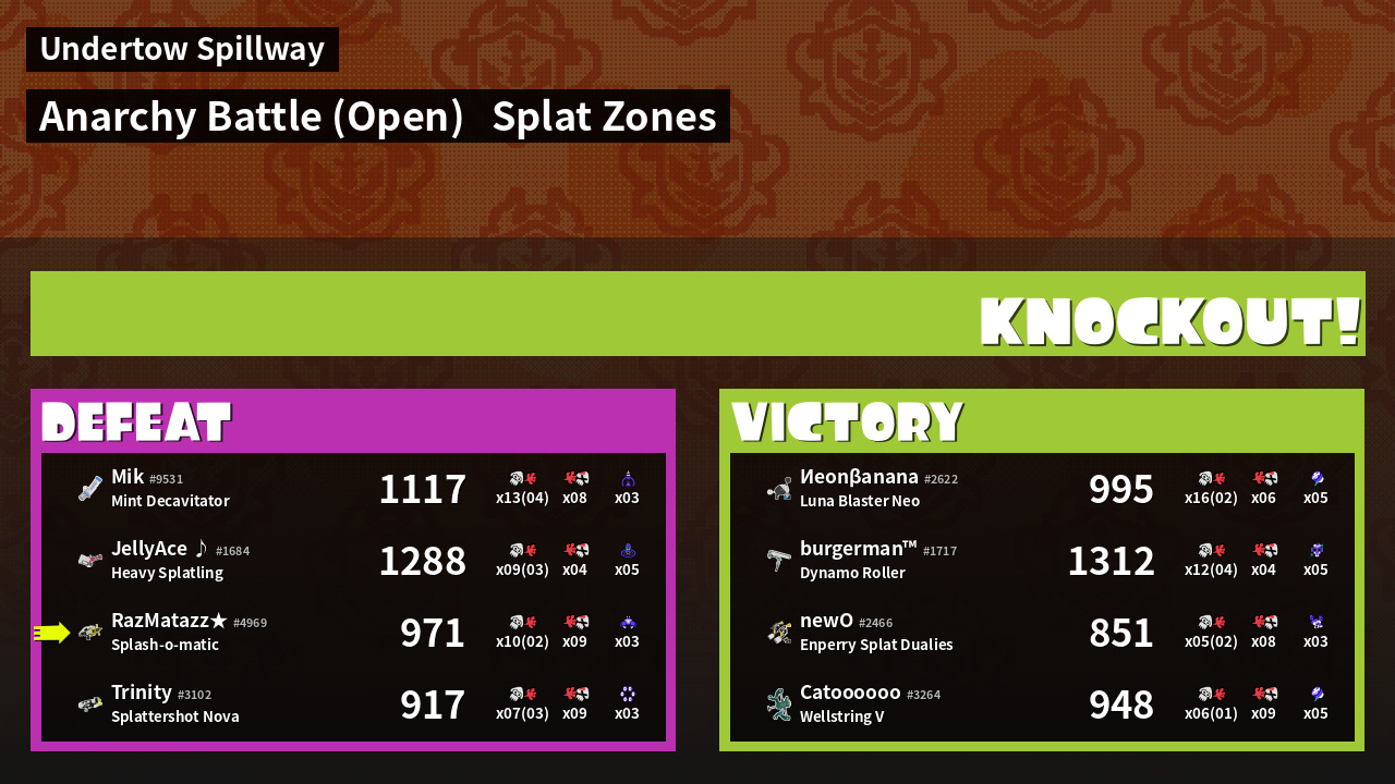 | Mode | Splat Zones - Anarchy Battle (Open) |