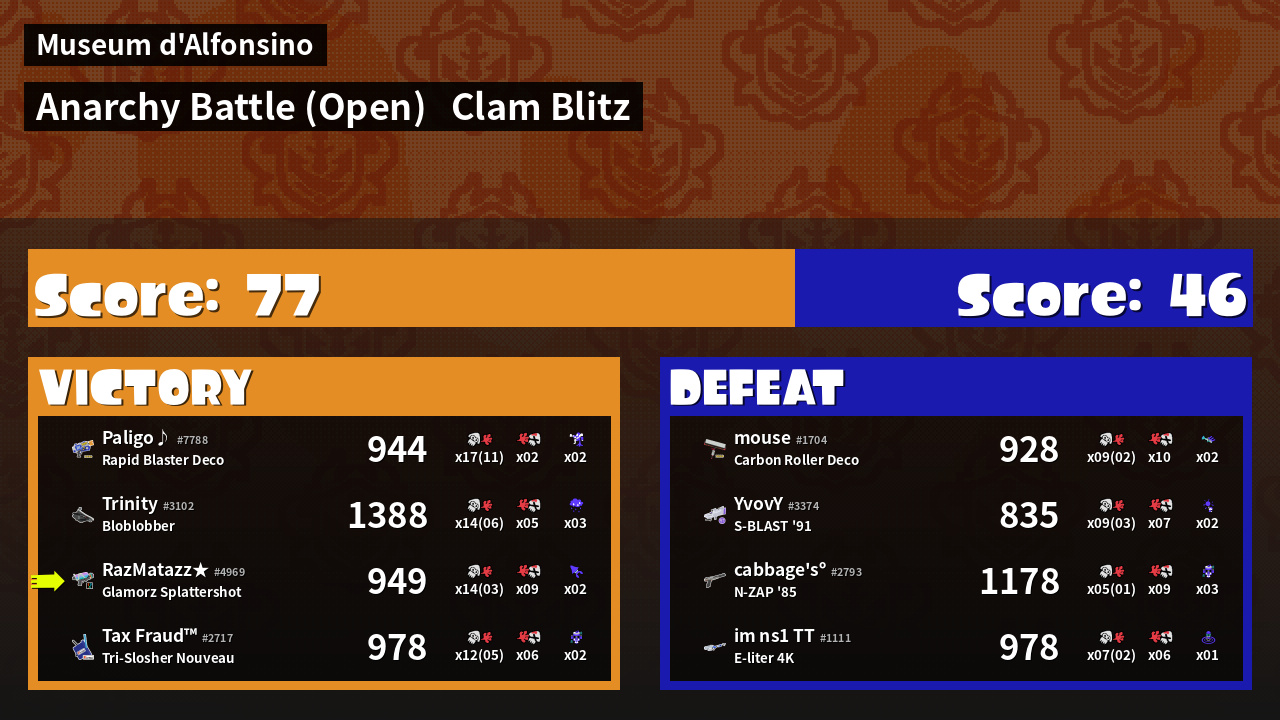 | Mode | Clam Blitz - Anarchy Battle (Open) |